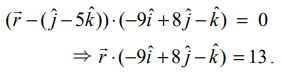 என்பது தளத்தின் மீதுள்ள ஏதேனும் ஒரு புள்ளியின் நிலைவெக்டர் எனில், மேற்கண்ட சமன்பாட்டிலிருந்து தளத்தின் கார்டீசியன் சமன்பாட்டை −9x+8y−z=13 அல்லது 9x−8y+z+13=0 எனப்பெறுகிறோம்.