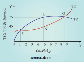 TC & TR அணுகுமுறையில், TC மற்றும் TRக்கு இடையே உள்ள வேறுபாட்டை கண்டறிந்து ஒரு நிறுவனம் ஈட்டும் இலாபமானது கணக்கிடப்படுகிறது. சமநிலை என்பது TC மற்றும் TRக்கு இடையே உள்ள இடைவெளி அதிகமாக இருக்கும் புள்ளியில் நிகழும் (EN). பொதுவாக உச்சபட்ச இலாபத்தை கணக்கிட TC – TR முறையை கடைப்பிடிப்பது கிடையாது. ஆகையால் இலாபம் அல்லது நட்டத்தை கணக்கிட பொருளியல் வல்லுநர்கள் MC = MR அணுகுமுறையை பயன்படுத்துகின்றனர்.