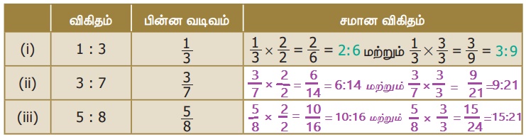 ● அதாவது, 1 : 2, 2 : 4 மற்றும் 4 : 8 ஆகியவை சமான விகிதங்களாகும்.