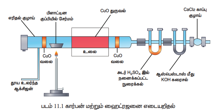 செய்முறை, கணக்கீடு, எடுத்துக்காட்டு - கார்பன் மற்றும் ஹைட்ரஜனை அளந்தறிதல் | 11th Chemistry : UNIT 11 : Fundamentals of Organic Chemistry