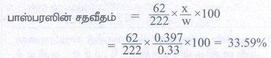 w g கரிமச் சேர்மத்திலுள்ள P ன் சதவீதம் = 62/222 × 0.66/0.24 × 100% = 76.80%
