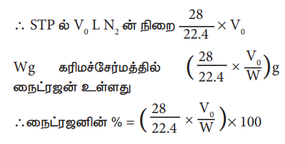 Wg கரிமச்சேர்மத்தில் (28/22.4 × V0/W)g நைட்ரஜன் உள்ளது