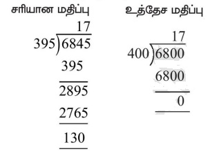 ஆகவே 6845 ÷ 395 இன் உத்தேச மதிப்பு 17 ஆகும்.