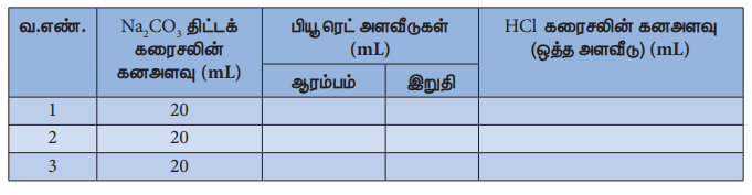 இணைப்பு HC1 கரைசல் VS Na2CO3 திட்டக் கரைசல்