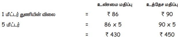 எனவே, 5 மீட்டர் துணியின் உத்தேச விலை = ₹ 450