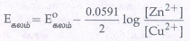 3. ஜிங்க் மற்றும் காப்பர் மின்முனைகளின் கணக்கிடப் பட்ட emf மதிப்புகளைப் பயன்படுத்தி, 25°C ல் பின்வரும் மின்கலத்தின் emf மதிப்பை காண்க.