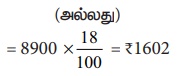 18% சரக்கு மற்றும் சேவை வரி = ₹10502 – ₹8900 = ₹1602