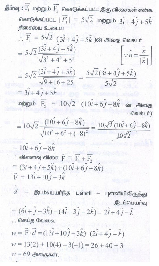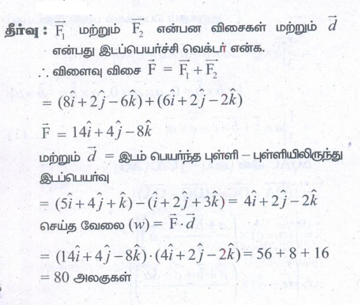 என்ற வெக்டரை நிலைவெக்டராகக் கொண்ட புள்ளிக்கு நகர்த்துகிறது எனில், அவ்விசைகள் செய்த வேலையைக் காண்க.