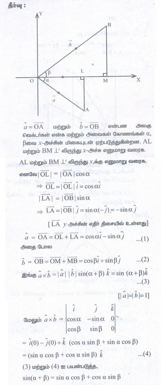 10. sin(α+β) = sinα cosβ + cosα sinβ என வெக்டர் முறையில் நிறுவுக.