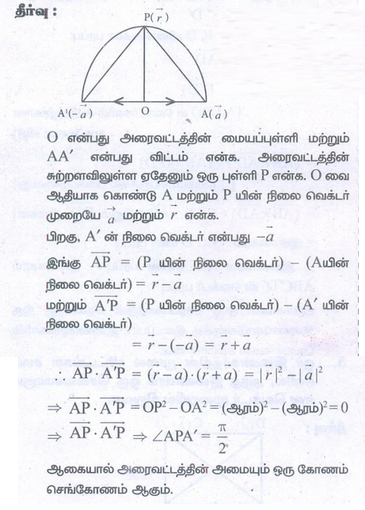 3. வெக்டர் முறையில், ஓர் அரைவட்டத்தில் அமையும் கோணம் ஒரு செங்கோணம் என நிறுவுக.
