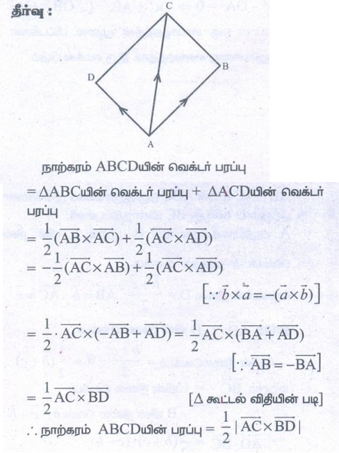 6. வெக்டர் முறையில், AC மற்றும் BD ஆகியவற்றை மூலைவிட்டங்களாகக் கொண்ட நாற்கரம் ABCD−ன் பரப்பு