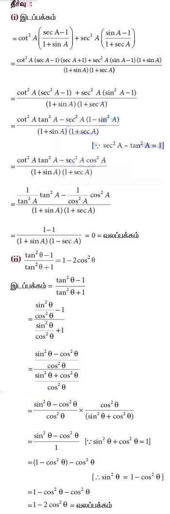 4. a cos θ − b sin θ = c எனில் (a sin θ + b cos θ) = ± √ [a2 +b2 −c2] என நிரூபிக்கவும்.