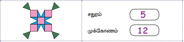 i. படத்திலுள்ள சதுரங்கள் மற்றும் முக்கோணங்களின் எண்ணிக்கையை எழுதுக.