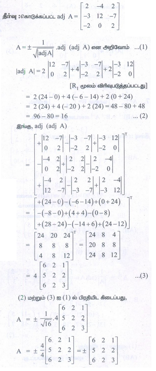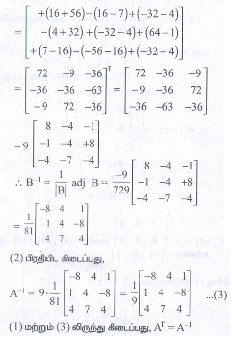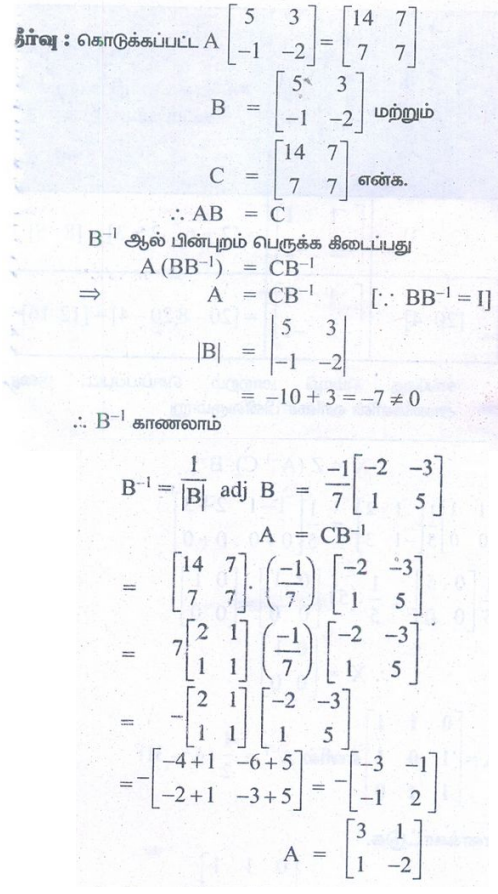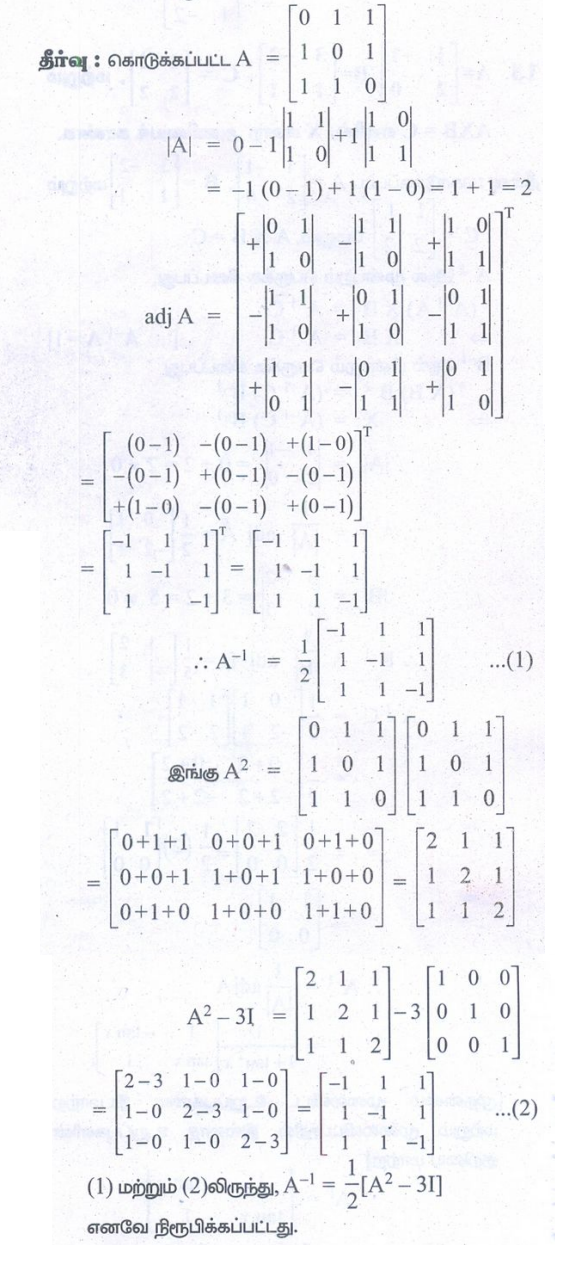 கேள்விகளுக்கான பதில்கள், தீர்வுகள் - பயிற்சி 1.1: பூச்சியமற்ற கோவை அணியின் நேர்மாறு (Inverse of a Non−Singular square matrix) | 12th Maths : UNIT 1 : Applications of Matrices and Determinants