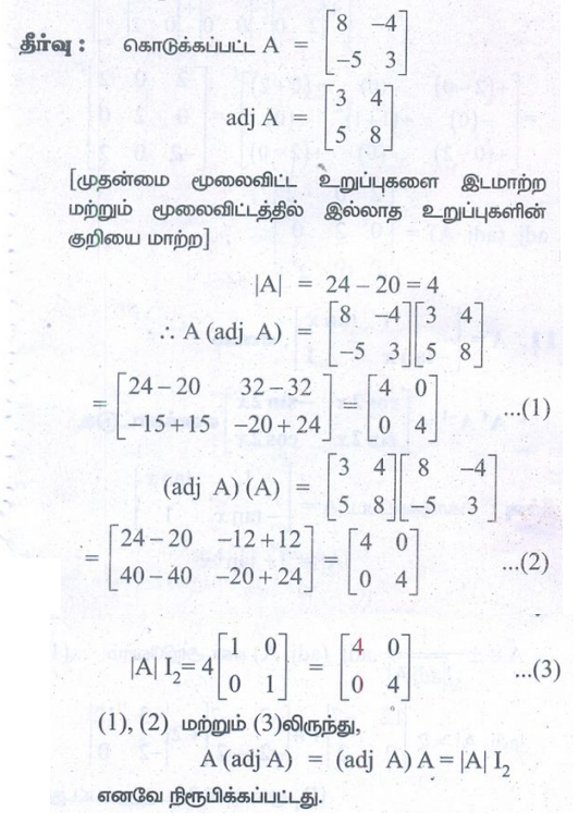 எனில் A (adj A) = (adj A) A = |A|I2 என்பதைச் சரிபார்க்க.