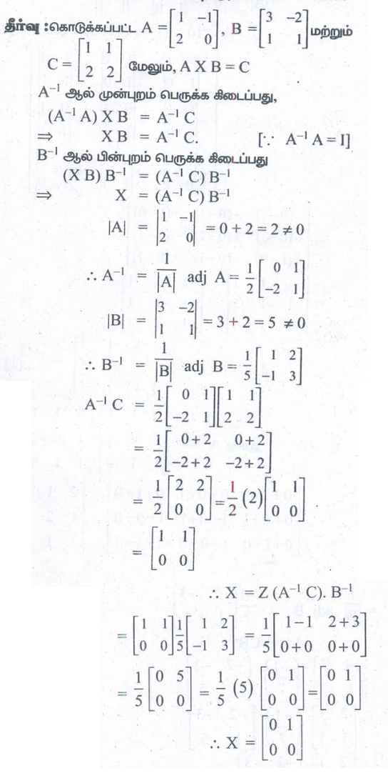 மற்றும் AXB = C எனில் X என்ற அணியைக் காண்க.