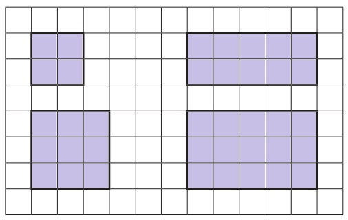 கட்டகத்தாளைப் பயன்படுத்தி, செவ்வகங்கள், சதுரங்களின் பரப்பளவைக் காண்க. ஒவ்வொரு சதுரத்தின் பரப்பளவு 1 ச.செ.மீ ஆகும்.