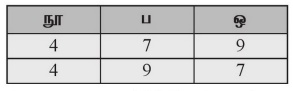 6. இராஜன் 4, 7 மற்றும் 9 என்ற இலக்கங்களைப் பயன்படுத்தி 3 இலக்க எண்களை எழுதுகிறான். எத்தனை எண்களை அவனால் எழுத முடியும்?