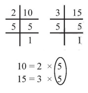 10, 15ன் மீ.சி.ம. = 5 × 2 × 3 = 30