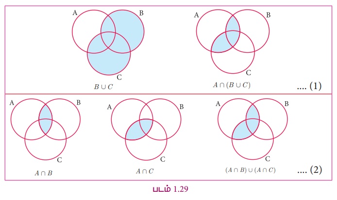 (1) மற்றும் (2) இலிருந்து, A∪(B∩C) = (A∪B)∩(A∪C) என்பது சரிபார்க்கப்பட்டது.