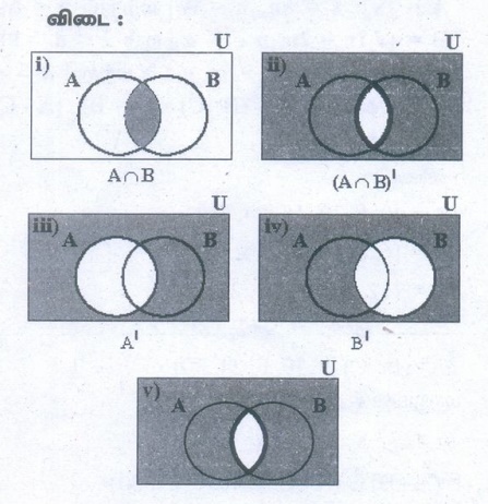 11. வென்படங்களைப் பயன்படுத்தி (A∩B)' = A'∪B' என்பதைச் சரிபார்க்க.