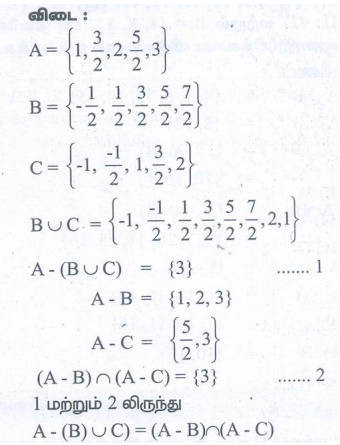 எனில், A − (B∪C) = (A − B) ∩ (A – C) எனக் காட்டுக.
