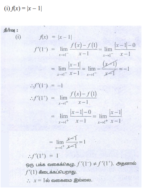 புத்தக கணக்குகளுக்கான பதில்கள், தீர்வுகள் | கணக்கு - பயிற்சி 10.1: வகைமை (வகையிடல் தன்மை) மற்றும் தொடர்ச்சி (Differentiability and Continuity) | 11th Mathematics : UNIT 10 : Differential Calculus: Differentiability and Methods of Differentiation