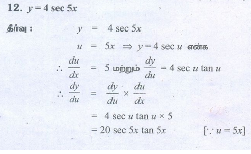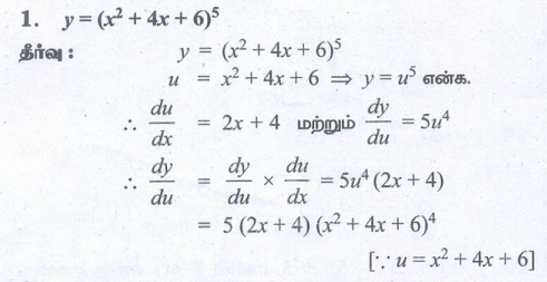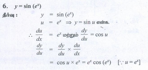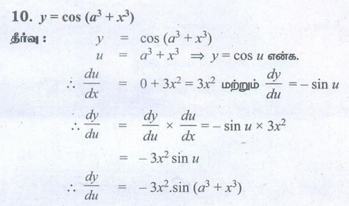 புத்தக கணக்குகளுக்கான பதில்கள், தீர்வுகள் | கணக்கு - பயிற்சி 10.3: சார்பின் சார்பினது வகைக்கெழு (இணைப்பு விதி) எடுத்துக்காட்டுகள் | 11th Mathematics : UNIT 10 : Differential Calculus: Differentiability and Methods of Differentiation