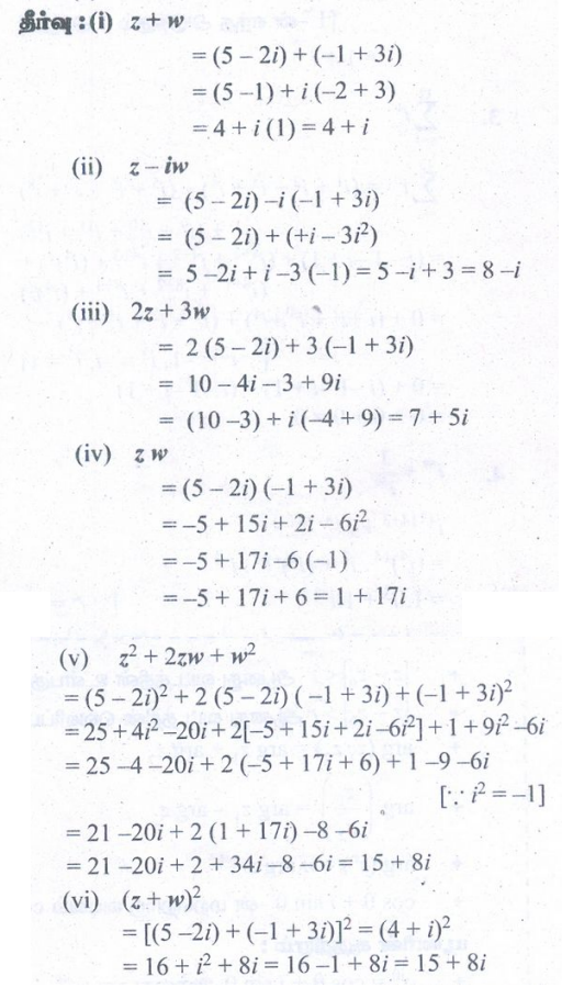 கேள்விகளுக்கான பதில்கள், தீர்வுகள் - பயிற்சி 2.2: கலப்பு எண்கள் (Complex Numbers) | 12th Maths : UNIT 2 : Complex Numbers