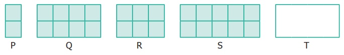 6. ஒரே அளவுள்ள சதுரக் கட்டங்களைக் கொண்டு அமைக்கப்பட்ட பின்வரும் செவ்வகங்கள் ஒரே அளவு அகலமும் வெவ்வேறான நீளமும் கொண்டுள்ளன.