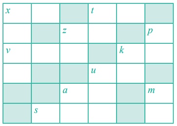 7. கீழேக் கொடுக்கப்பட்டுள்ள மாறிகளுக்கான குறிப்புகளைப் பயன்படுத்திக் குறுக்கெழுத்துப் புதிரை நிறைவு செய்க.