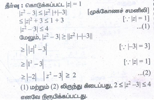 5. | z | = 1 எனில், 2 ≤ |z2 − 3| ≤ 4 எனக்காட்டுக.