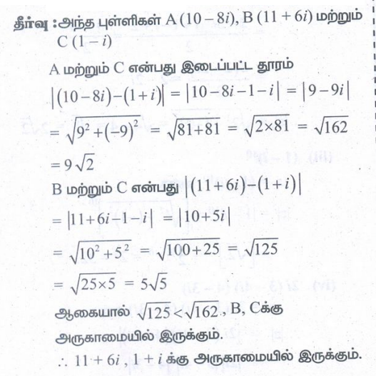 3. 10 − 8i, 11 + 6i ஆகிய புள்ளிகளில் எப்புள்ளி 1 + i −க்கு மிக அருகாமையில் இருக்கும்?