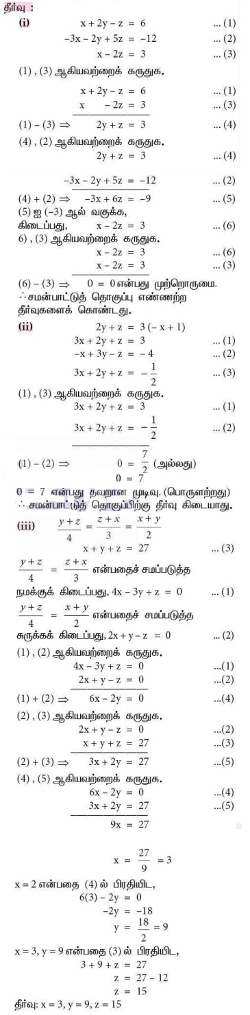 2. கீழ்க்காணும் சமன்பாட்டுத் தொகுப்புகளின் தீர்வுகளின் தன்மையைக் காண்க.