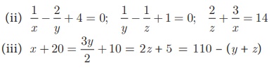 1. கீழ்க்காணும் மூன்று மாறிகளில் அமைந்த ஒருங்கமை நேரியல் சமன்பாட்டுத் தொகுப்புகளைத் தீர்க்க.