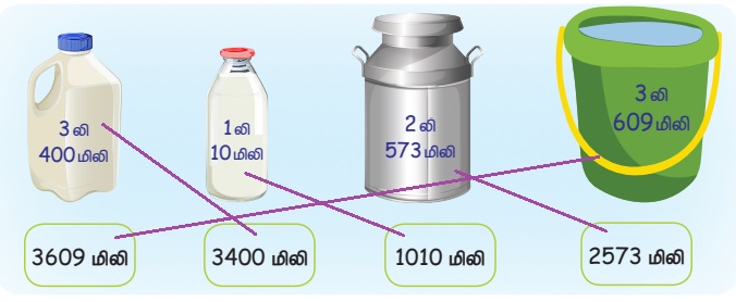 அளவைகள் | பருவம் 3 அலகு 3 | 4 ஆம் வகுப்பு கணக்கு - பயிற்சி 3.2 (திட்ட அலகுகளைப் பயன்படுத்தி கூட்டுதல் (லி, மிலி)) | 4th Maths : Term 3 Unit 3 : Measurements