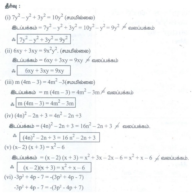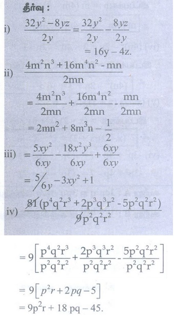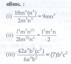 கேள்வி பதில்கள், தீர்வுகள் | இயற்கணிதம் | அலகு 3 | 8 ஆம் வகுப்பு கணக்கு - பயிற்சி 3.2 (இயற்கணிதக் கோவைகளின் வகுத்தல்) | 8th Maths : Chapter 3 : Algebra