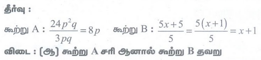 7. கூற்று A: 24p2 q ஐ 3pq ஆல் வகுத்தால் கிடைக்கும் ஈவு 8p ஆகும்.