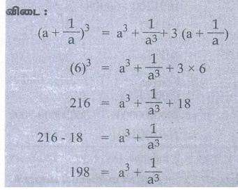 9. a + (1/a) = 6 எனில் , a3 + 1/a3 இன் மதிப்பு காண்க.