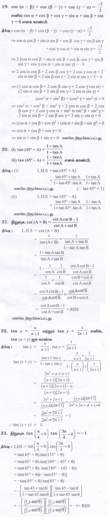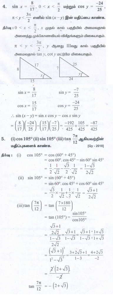 பயிற்சி 3.4 : முக்கோணங்களின் முற்றொருமைகள் : கூட்டுக்கோணங்களின் சூத்திரங்கள் அல்லது கூட்டல் அல்லது கழித்தல் முற்றொருமைகள்
