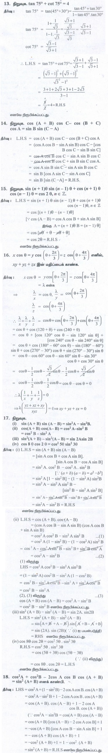 கணக்கு புத்தக பயிற்சிக் கணக்குகள், தீர்வுகள் மற்றும் பதில்கள் - கணிதம் : முக்கோணவியல் : முக்கோணங்களின் முற்றொருமைகள் : கூட்டுக்கோணங்களின் சூத்திரங்கள் அல்லது கூட்டல் அல்லது கழித்தல் முற்றொருமைகள்