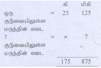 ∴ 7 கண்ணாடி குடுவைகளில் வைக்க கூடிய மருந்தின் எடை 175 கி 875 மி.கி