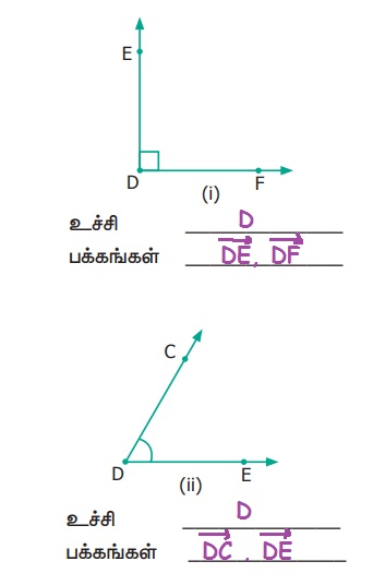 2. படத்தில் உள்ள ஒவ்வொரு கோணத்திற்கும் அதன் உச்சி மற்றும் பக்கங்களை எழுதுக.