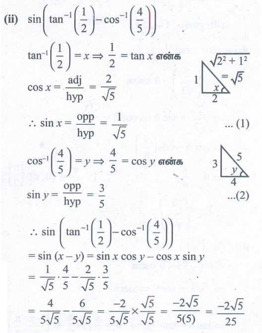 (ii) sin [tan–l (1/2) − cos–l (4/5)]