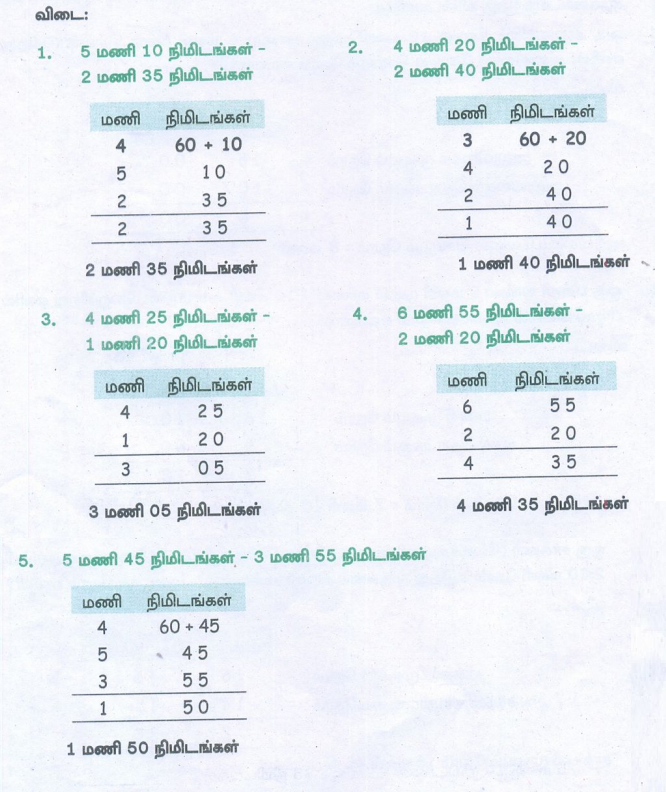 நேரம் | பருவம் 1 அலகு 5 | 5 ஆம் வகுப்பு கணக்கு - பயிற்சி 5.1 (கால இடைவெளி கண்டுபிடித்தலில் கூட்டலையும், கழித்தலையும் பயன்படுத்துதல்) | 5th Maths : Term 1 Unit 5 : Time