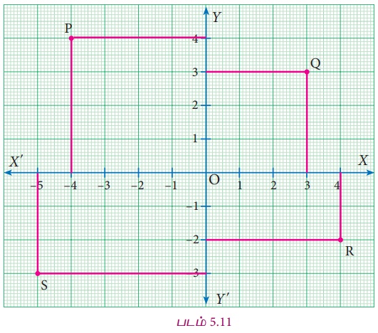 உள்ள படம் 5.11 இல் தரப்பட்டுள்ள கார்ட்டீசியன் தளத்தில் இருந்து, பின்வரும் புள்ளிகளின் கிடை அச்சுத் தொலைவு மற்றும் செங்குத்து அச்சுத் தொலைவை எழுதுக.
