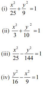8. பின்வரும் சமன்பாடுகளின் கூம்பு வளைவின் வகையைக் கண்டறிந்து அவற்றின் மையம், குவியங்கள், முனைகள் மற்றும் இயக்குவரைகளைக் காண்க :
