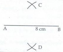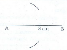 படி 1 : ஒரு நேர்கோட்டை வரைக. அதன் மீது A மற்றும் B என்ற புள்ளிகளை AB = 8 செ.மீ என்றவாறு குறிக்க