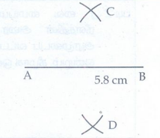 v) 5.8 செ.மீ நீளமுள்ள AB என்ற கோட்டுத் துண்டிக்கு செங்குத்து இரு சமவெட்டியை வரைக.