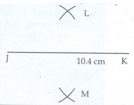 படி 1 : ஒரு நேர்கோட்டை வரைக. அதன் மீது J மற்றும் K என்ற புள்ளிகளை JK = 10.4 செ.மீ என்றவாறு குறிக்க